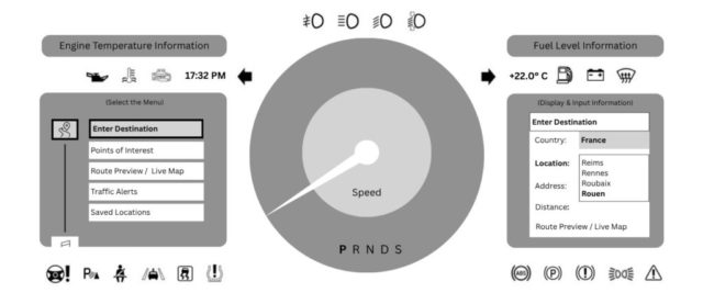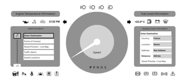 The driver turns on his car and the screen automatically switches from the car model badge to the dashboard. Today he is planning a long 6-hour trip that will take him from Cologne, Germany to Rouen in the north-east of the French capital. The dashboard calculates the distance and programs the route of the trip that will take him at his final destination.
