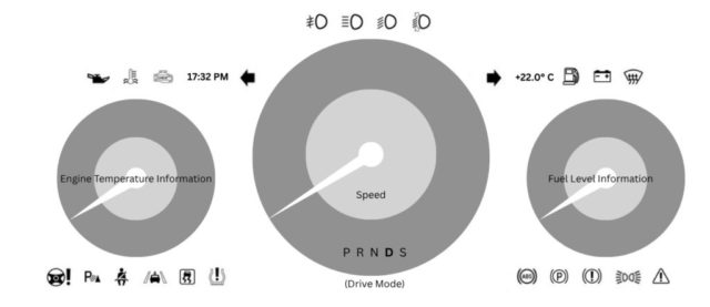 The driver instrument cluster is aligned with the traditional 3-gauge design that defines the dashboard of Rolls-Royce. We wanted to remain faithful to the design by maintaining the details and elements that distinguish the typical Rolls-Royce design from other luxury brands.