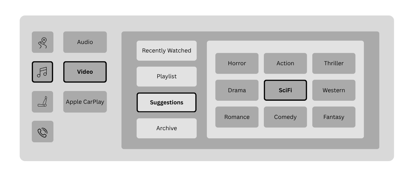 The following visual journeys explore how drivers and passengers engage with core functions — such as navigation, media, and vehicle settings — through intuitive sequences that reflect real-world usage inside a high-performance luxury vehicle.