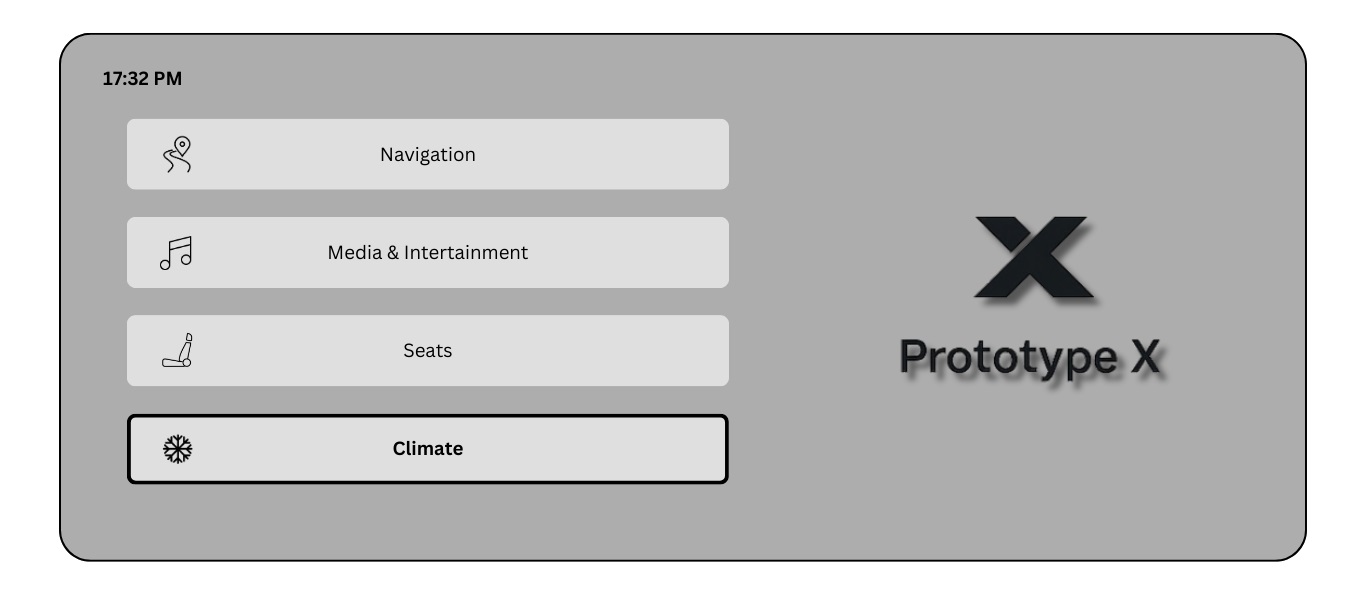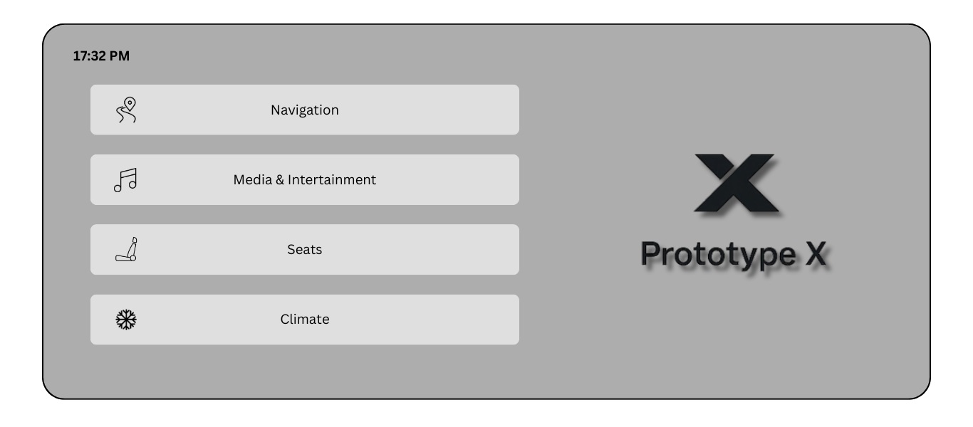 Showcasing the dynamic user flows and microinteractions that define the in-cabin experience of the Prototype X infotainment system.