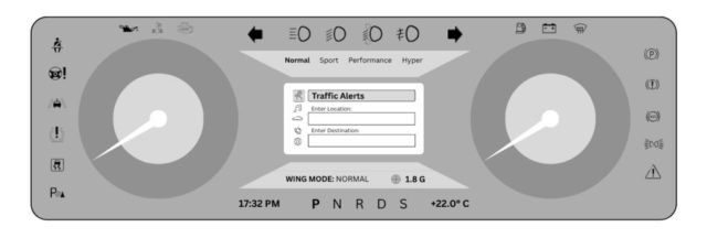 - Performance feedback: real-time vehicle data, adaptive drive mode highlights, and gesture-based control