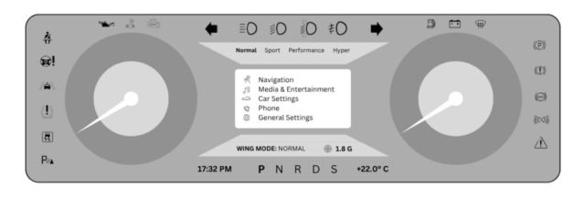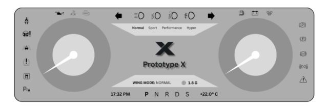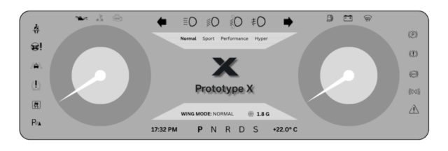 Prototype X is a 968 horsepower and a 365 km/h top speed high-performance hypercar for raw speed enthusiasts. The infotainment system is designed to be minimal, fast, and tactile, with a futuristic touch.